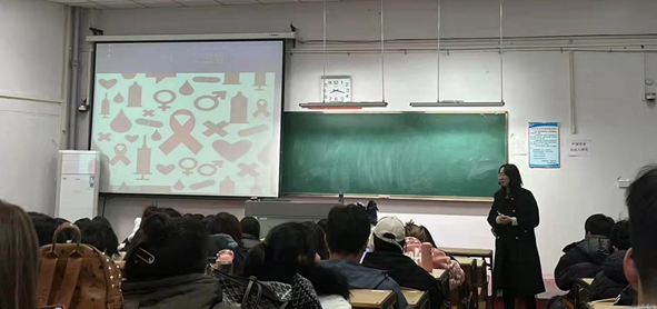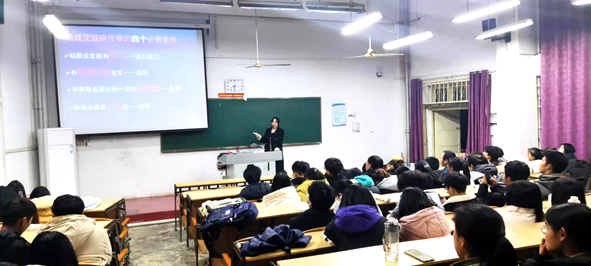 冯清为小讲师们做宣讲示范,从成为讲师培训开始介绍,层层递进,举出河南艾滋病村、英国血制品等具体事例,直观清晰地让同学们了解到艾滋病发病机制和传播的途径;着重介绍了“四免一关怀”“艾滋反歧视”等政策,呼吁防艾小讲师关爱艾滋病患者。细致的讲解极大丰富了防艾小讲师的防艾基础知识,也调动了小讲师们投身艾滋病宣传活动的热情。