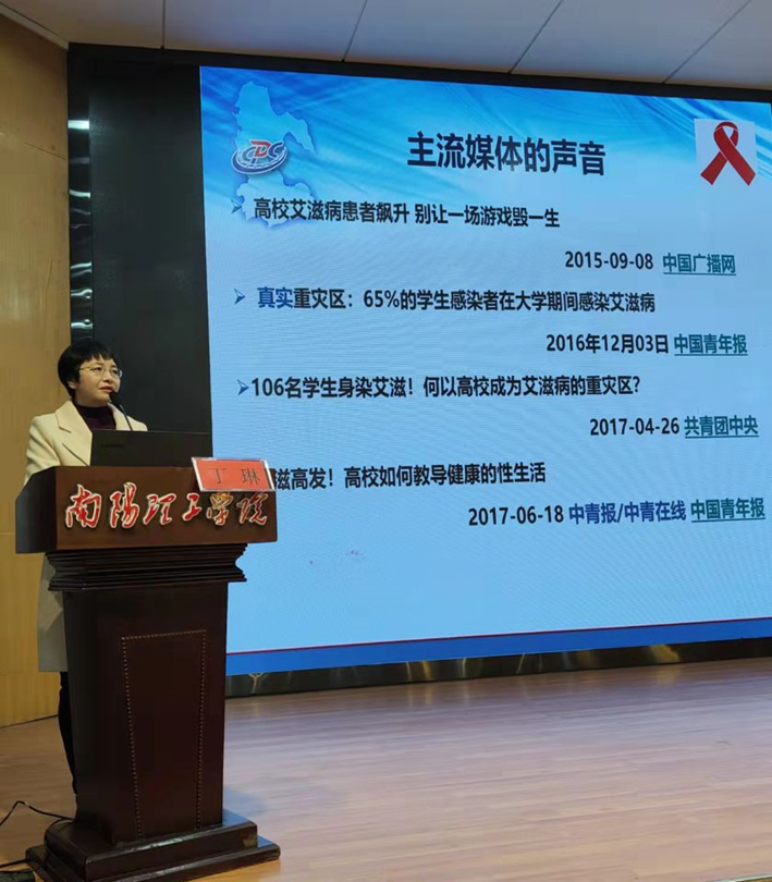 本次讲座邀请南阳市疾控中心的相关专业人士主讲,她从艾滋病致病的生物学机制、国内外以及全疆艾滋病流行特征、高危人群艾滋病防控、青年学生如何预防艾滋病等知识深入浅出得展开讲座,并提到当代大学生应当深入了解有关性与艾滋病的知识,并为大家详细介绍了如何检测艾滋病以及安全套的使用方法,呼吁学生关爱、理解、包容艾滋病患者。