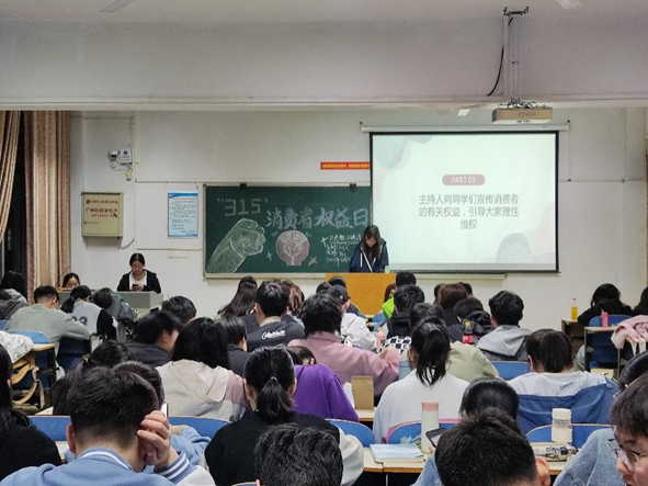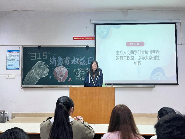 本网讯(学生记者/陈红)为提高同学们对消费者权益日的了解,增强同学们的维护自我权益意识,3月14日,数理学院在13教514教室开展“3.15消费者权益日”班会,21级全体同学参加。