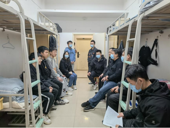 本网讯(特约记者/谭萌 学生记者/张昊宇 刘思航)4月3日,数理学院党委书记牛军科、院长郭学军、党委副书记赵刚彬和团学办老师深入学生宿舍进行走访,传达近期学校疫情防控工作精神和清明期间学校各项工作安排。
