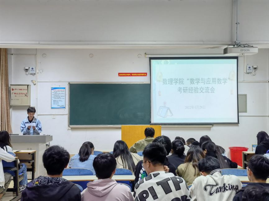 本网讯(学生记者/陈瑞雯)为激发数理学院学生的考研积极性,了解备考方法,合理制定考研计划,4月28日,数理学院在13教610教室开展“数学与应用数学”专业考研经验交流会,会议邀请了六位已被研究生高校录取的同学主讲,19级全体同学参加。