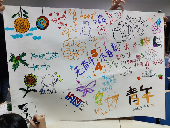 班会在“五四”歌曲《闪光如你》和《有你》中拉开序幕。夏茂林向同学们讲述“五四运动”的历史并详细讲解了青年学生在这场运动中扮演的角色及承担的责任。他从时代需要、当下发展两个方面讲述当代青年的责任并组织观看《纪念五四运动100周年纪录片》。李智提到,大家都是心里有火、眼中有光、胸中有热血的青年。青年人要“寄意寒星荃不察,我以我血荐轩辕”。同学们通过创意的涂鸦活动,将自己对五四青年节的认识画在了纸上,展现了青年的朝气蓬勃。夏茂林说,我们既是历史的创造者,又是历史的见证者,苟利国家生死以,岂因祸福避趋之。
