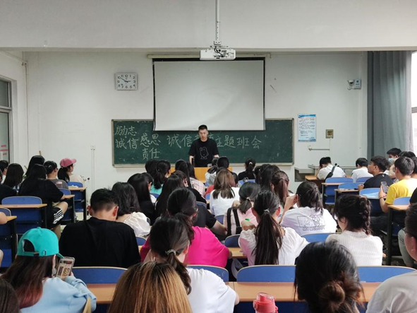 谭萌结合同学们当前的学习生活情况从三个层面讲述了诚信的重要性。他说到,诚信是人与人之间沟通的桥梁,是沟通你与我之间的纽带,呼吁同学们要提高自身修养,养成诚信品质。他宣传国家助学贷款及其他资助政策,并同时结合目前和即将到来的期末考试,倡导同学们诚信考试,不要违规违纪,树立风清气正的学风和考风。