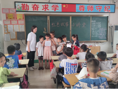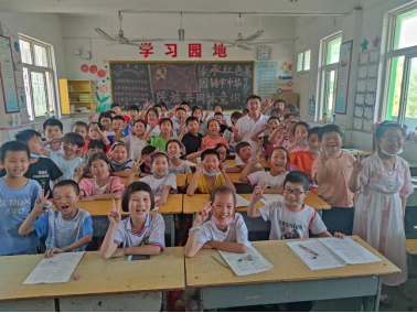 实践队员们在各个班级开展红色故事讲述、红色歌曲传唱、科学实验、感恩教育、安全知识、心理健康、绘画未来等各色各样的课堂,同时开展“童心守望”一系列素拓活动。一对一跟班帮扶的实践队员通过宣讲、聊天、游戏等方式走入小学生内心,采用生动有趣的方式进行授课,为小学实施素质教育服务,丰富小学生的课堂生活,同时与当地教育人员深度沟通交流,以促进共同提高,学校校长与各班班主任对实践队员的教育内容和方式给予高度的肯定。离别之际,小朋友们对“小老师”们依依不舍,用纸笔纷纷写下留言表达感激与祝福。