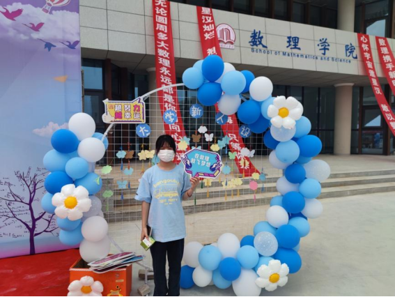 17号教学楼下,创意展板上“我爱数理”的首拼字母图样是由数理学院2022级全新新生的生活照拼组而成,“红心”里的每一个红包中都是数理学院的学长学姐们亲笔写下的祝福。新生在这里完成登记报到,在展板前合影并抽取祝福,并将自己写下的未来展望和期望“人设”系在展架。学院还精心为新生每人准备了一件特殊的礼物——小草的种子,寓意着新同学如种子般,在母校肥沃的土壤里茁壮生长。