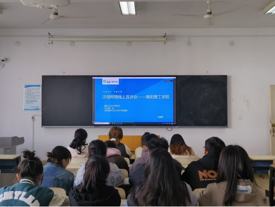 本网讯(学生记者/马晶晶)为帮助应届毕业生搭建就业平台,10月13日,数理学院在13教414教室开展泛微网络线上宣讲会,数理学院大四部分学生参加。