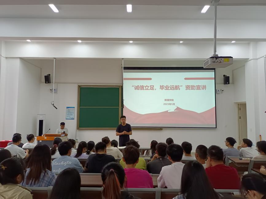 本网讯(学生记者/杨家鑫)为有效落实毕业生资助政策,进一步做好毕业生资助政策宣传工作,5月23日,数理学院在23教103教室开展“诚信立足,毕业远航”资助宣讲,本次宣讲由毕业班辅导员谭萌主持,2023届毕业生参加。