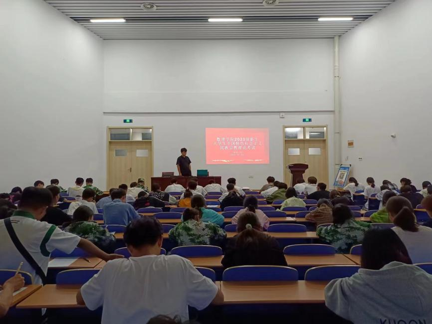 本网讯(学生记者/马晶晶)为加强大学生理想信念教育,提高广大学生法律意识,9月22日,数理学院在17教开展2023级新生大学生中国特色社会主义民族宗教理论考试,23级全体学生参加。