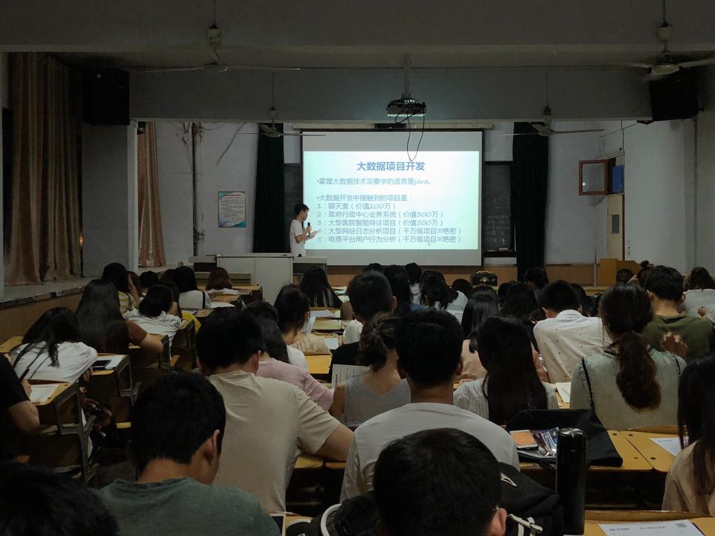 曹总监以当前大数据技术领域的高需求作为切入点,讲述了数学与大数据的紧密联系、以及大数据已然成为未来发展的热门行业等方面,深入浅出地介绍了大数据的直接定义、特性以及大数据时代下的应对之道。他将“大数据”与我们自己的日常生活联系起来,在此基础上进一步介绍了“大数据”在社会科学领域以及商业领域上的应用。并结合时下创新的必然趋势,深刻分析了大数据在创新潮流中所占有的客观优势,动员在场学生能够成为大数据时代融合创新的实践者。讲座中指出习近平总书记对于大数据领域的重视:“世界正在进入以信息产业为主导的经济发展时期,要推进互联网、大数据、人工智能、区块链等同实体经济深度融合,做大做强数字经济。”从而使在场学生了解到大数据时代已然来临。讲座最后,曹总监对于大数据课程进行了如下解读:大数据的相关课程涉及数学、统计和计算机学等学科知识;该专业重点培养具有以下三方面的素质的人才,即理论性的、实践性的、应用性的。