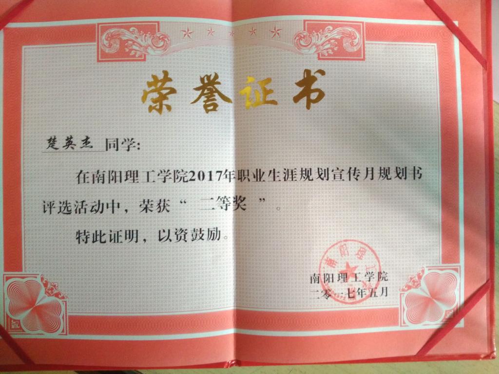 我院建新悦、楚英杰、张益文、张静四位同学在职业规划书评选活动中荣获奖项,其中建新悦、楚英杰荣获二等奖,张静荣获三等奖,张益文荣获优秀奖。