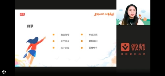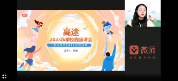本网讯(学生记者/杨家鑫 陈瑞雯)为更好的帮助应届毕业生求职就业,12月3日,数理学院邀请高途开展专场线上宣讲会,本次宣讲会由高途负责人陈璇主讲,部分应届毕业生参加。
