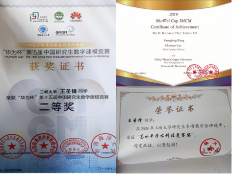 2018年获“华为杯”第十五届中国研究生数学建模二等奖,2019年获得2019国际大学生“数维杯”数学建模竞赛二等奖,2019-2020年,两次获得校“高水平学术科技竞赛奖”。