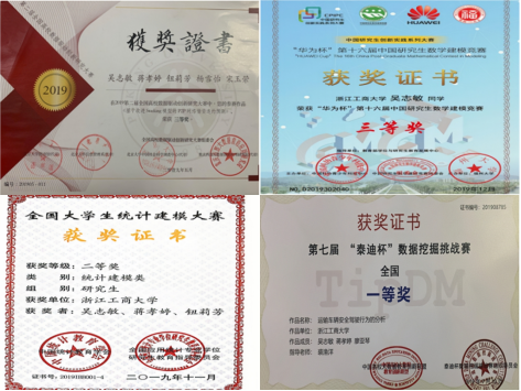 曾以浙江工商大学统计与数学学院研究生会主席的身份辅助学院开展各项工作,共获博士研究生国家奖学金、浙江工商大学优秀研究生荣誉、优秀研究生干部以及优秀共青团干部等荣誉,曾获第七届全国泰迪杯数据挖掘大赛一等奖、全国统计建模大赛研究生组二等奖、全国研究生数学建模大赛三等奖以及第二届全国数据驱动创新大赛研究生组三等奖,作为课题组成员参与国家社会科学基金以及全国统计科学研究项目等课题,目前在《Journal of Forecasting》SSCI二区期刊、《系统科学与数学》国内一级期刊和《统计与决策》国内核心期刊上共发表3篇论文。另外,还有一篇文章被国内统计学权威期刊《统计研究》录用,处于待见刊状态。