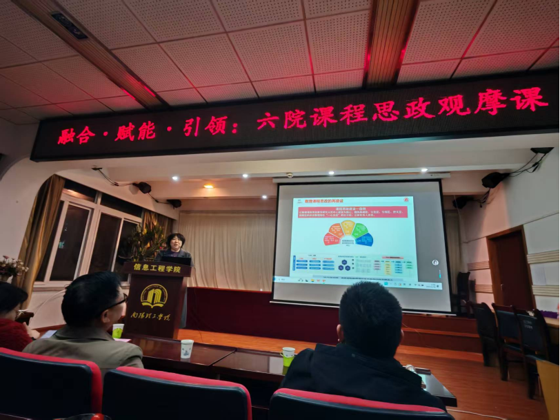11月18日下午,数理学院、信息工程学院、数字媒体与艺术学院、计算机与软件学院、土木工程学院、生化学院六学院在12教209会议室联合举办课程思政学习观摩活动,活动由数字媒体与艺术学院副院长孟祥芸主持,各学院骨干教师参加。